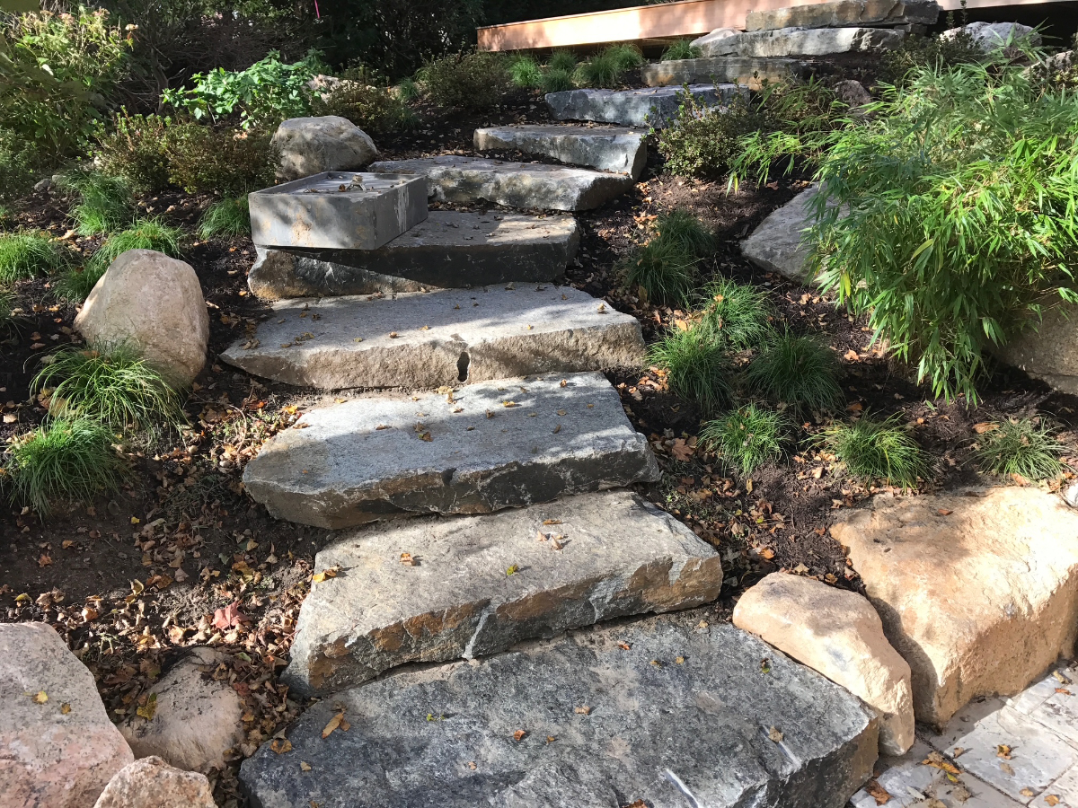 We work with premium materials including natural stone, granite, segmental block, bluestone, and thin stone to create safe, long-lasting transitions that complement your landscape and architecture.